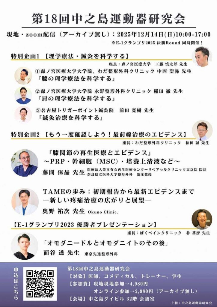第18回中之島運動器研究会/E-1グランプリ2025 Final【現地開催&オンライン配信】を開催いたしました